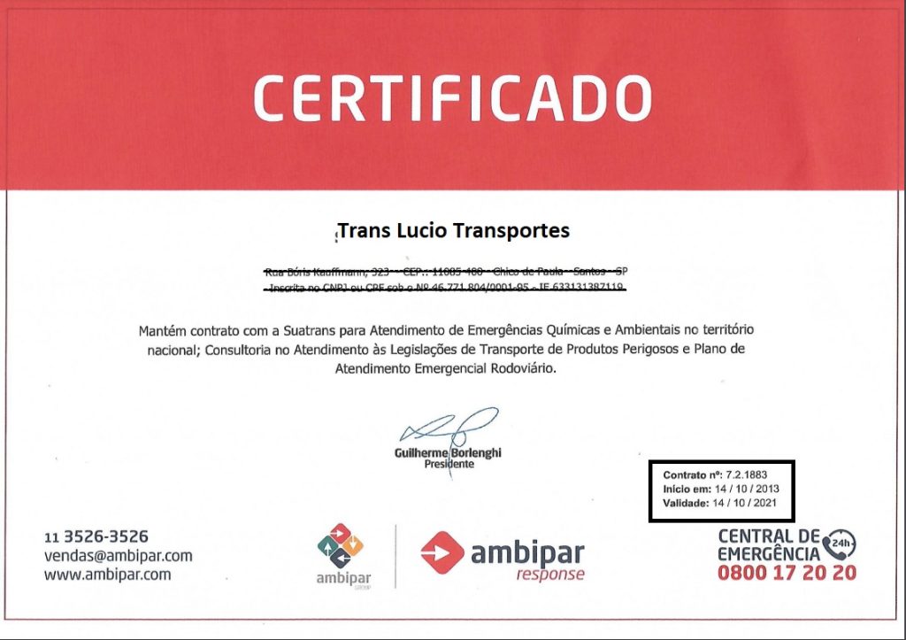 Responsabilidade ambiental com troca de óleos 100% nas concessionárias, contrato de manutenção, aluguel de caminhões com frota nova.